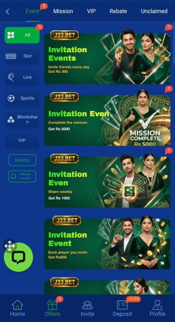 The J33Bet Game is currently accessible to all users worldwide and is free. To utilize all of its features, all you need is a gadget and an internet connection. It is especially well-known in Pakistan, despite its growing popularity worldwide. It is a preferred option among users in Pakistan due to the convenience and services it offers.